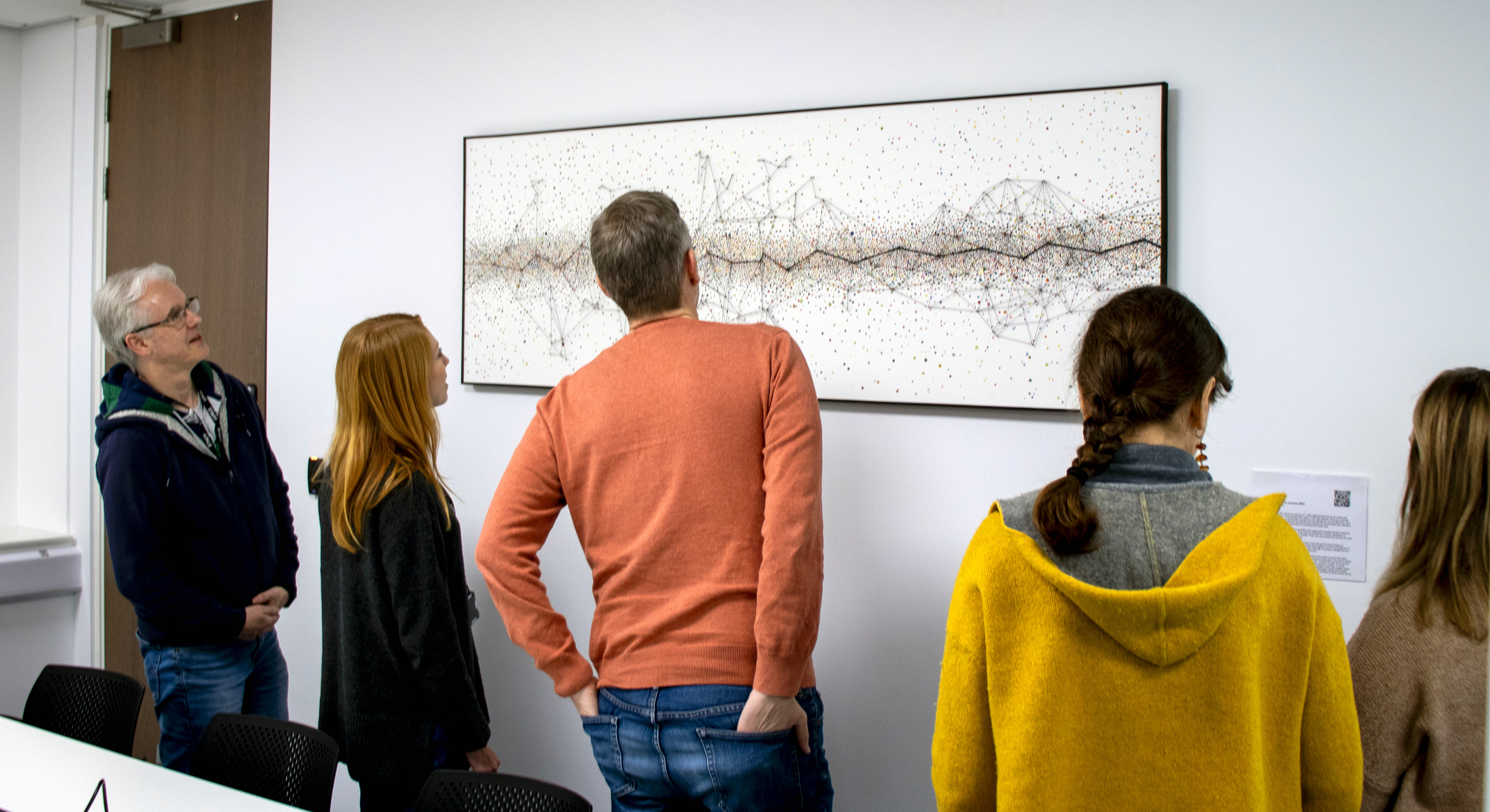The Heart and The Journey is a painting which was commissioned by healx.ai It is made up of 11,000 coloured dots that are all unique and individually painted.