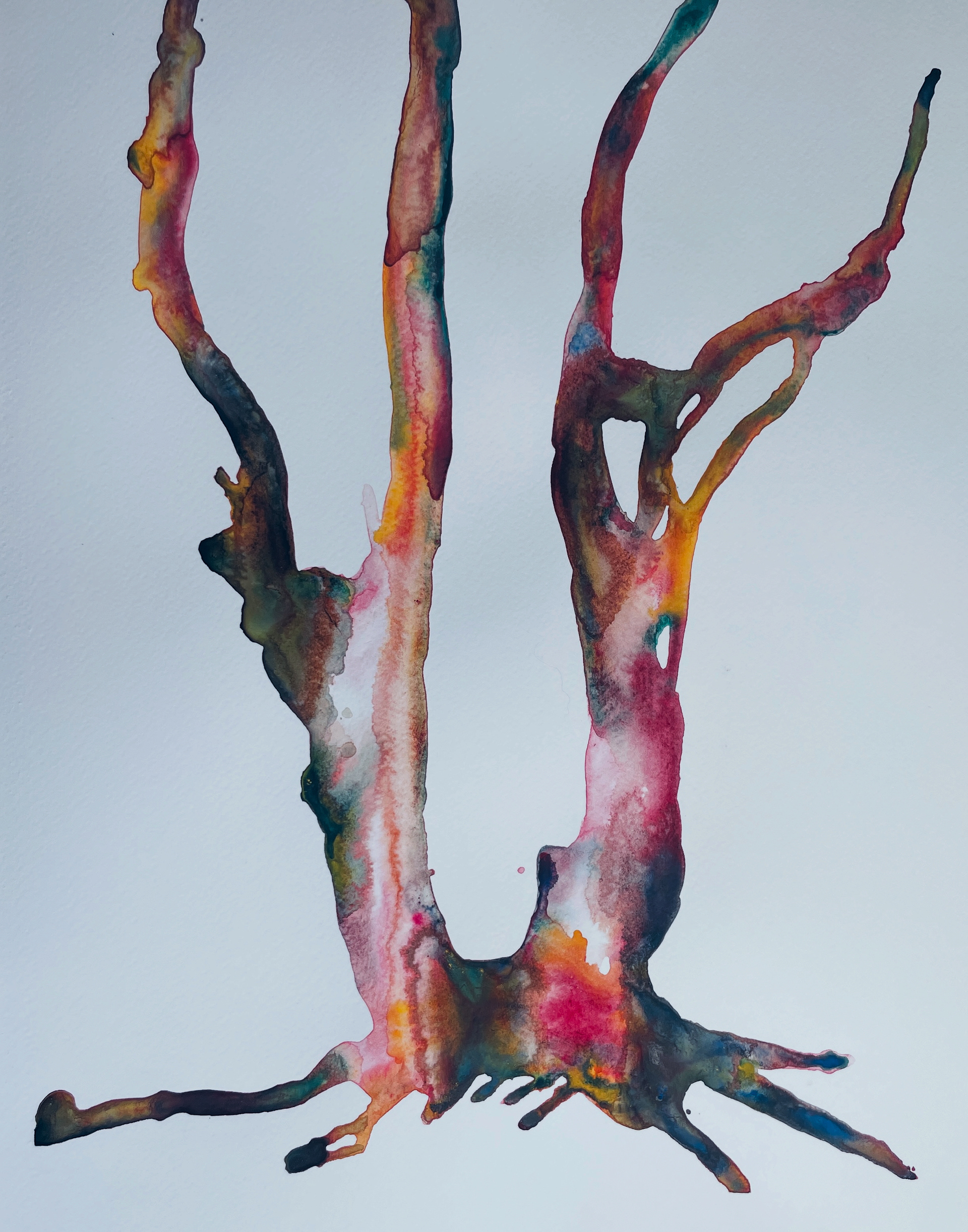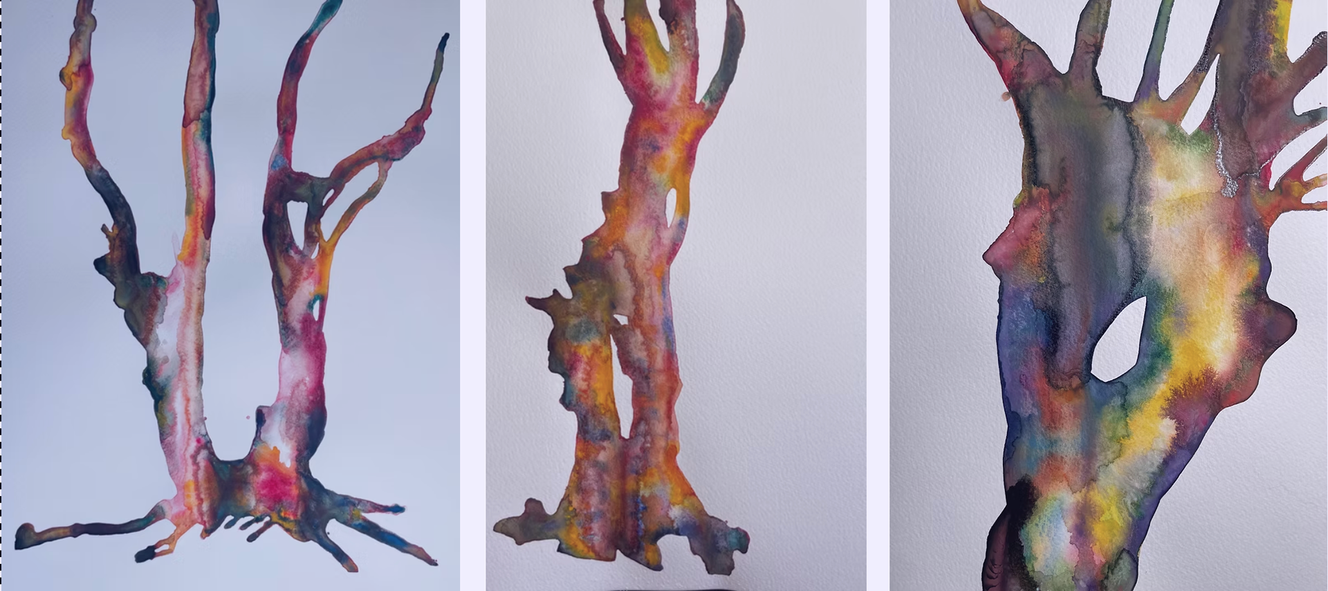 Loughton Camp is a series of abstract watercolour paintings inspired by the sculptural forms of the pollarded birch trees in Loughton Camp and the surrounding forest.